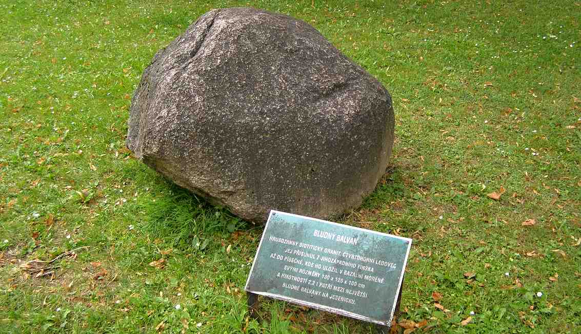 Před Vodní tvrzí v Jeseníku leží pod stromy v parku velký kámen se zaoblenými hranami a vrcholy. Nazývá se bludný balvan, byl nalezen v roce 1981 v Písečné a o dva roky později byl umístěn před Vodní tvrzí. Doprovázel v té době nově otevíranou geologickou expozici muzea. Vznikla v roce 2003 díky iniciativě pracovníků Lesní správy, kteří sem z okolí přemístili zajímavé horniny z okolí a vytvořili tak expozici nejen pro školní exkurze. Podle tabulky u bludného balvanu před Vodní tvrzí tvoří tento balvan hrubozrnný biocký granit (žula) původem z jihozápadního Finska.
