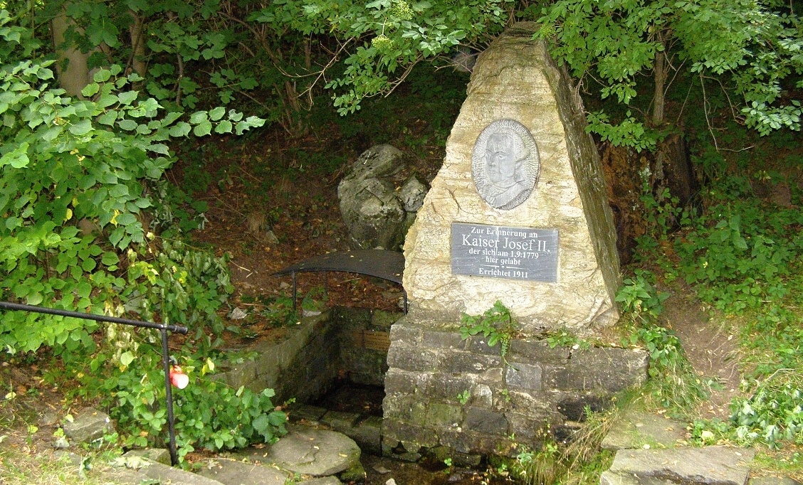 Pramen, ze kterého pil na své inspekční cestě císař Josef II., se nachází naproti penzionu v Horní Lipové. Jeho historie se začala odvíjet v 18. století, kdy spoluvladař Marie Terezie vykonával 1. září 1779 inspekční cestu Slezskem a při návštěvě Horní Lipové si nechal přinést vodu z tohoto pramene. Nepohrdl ani pouhou hliněnou miskou, protože hrníček byl v té době v okolí vzácností. Dne 8. září 1911 nechala obec, za finanční podpory Sudetského horského spolku z Frývaldova, na paměť této události u pramene postavit jehlanovitý pomník a na něm umístit tabulku hlásající: Zur Erinnerung an Kaiser Josef II. der sich am 1. 9. 1779 hier gelabt. Errichtet 1911.