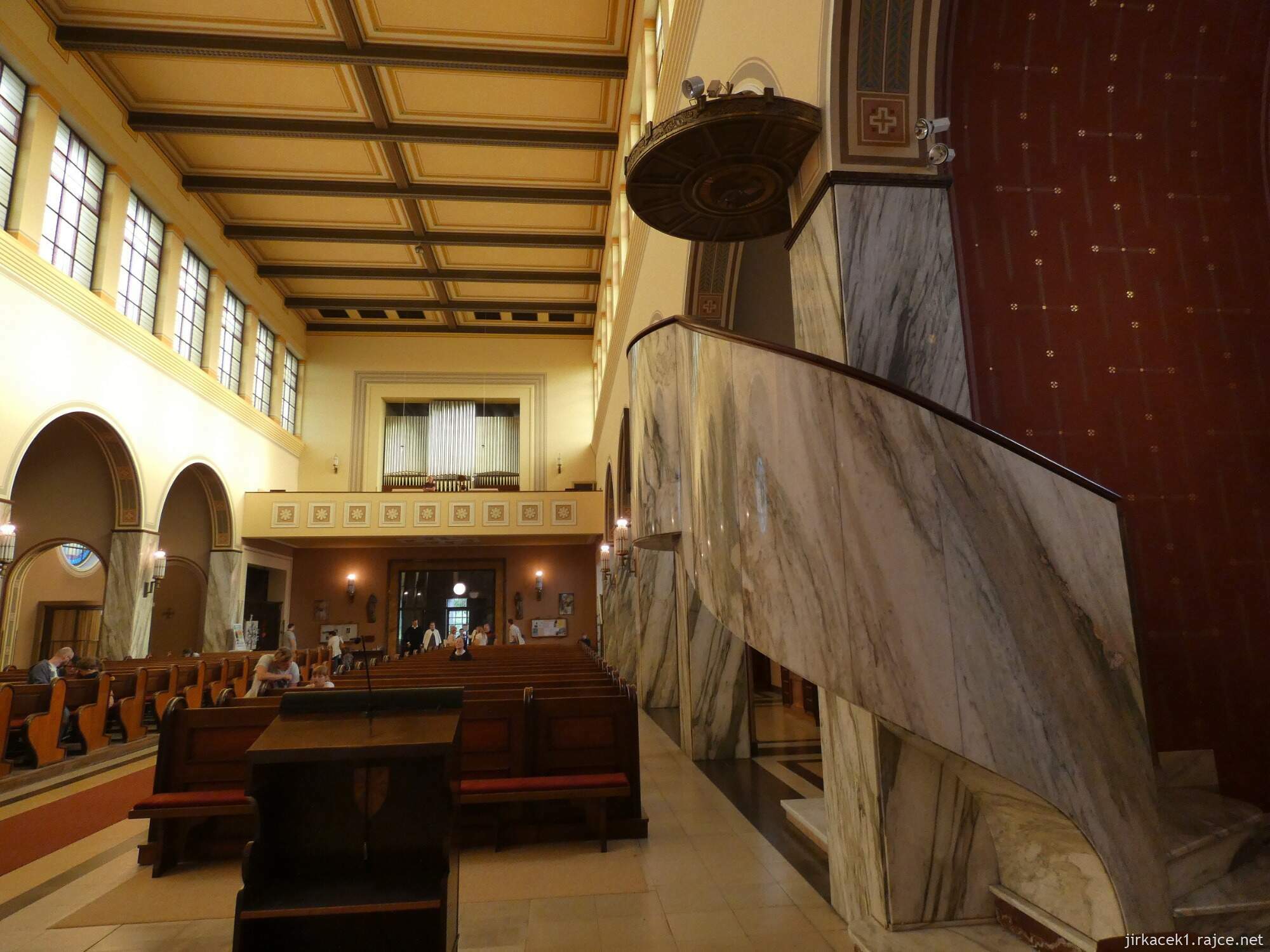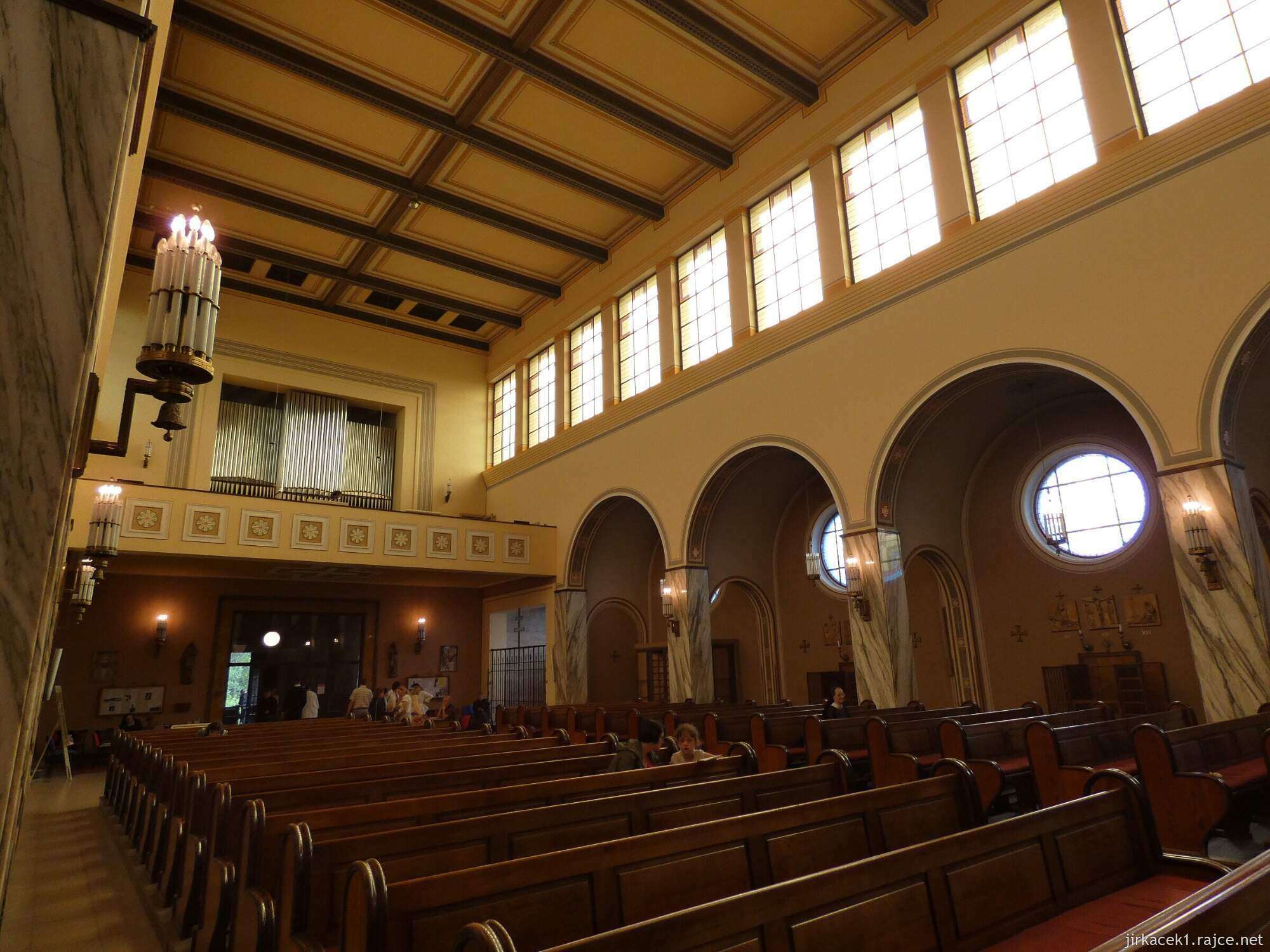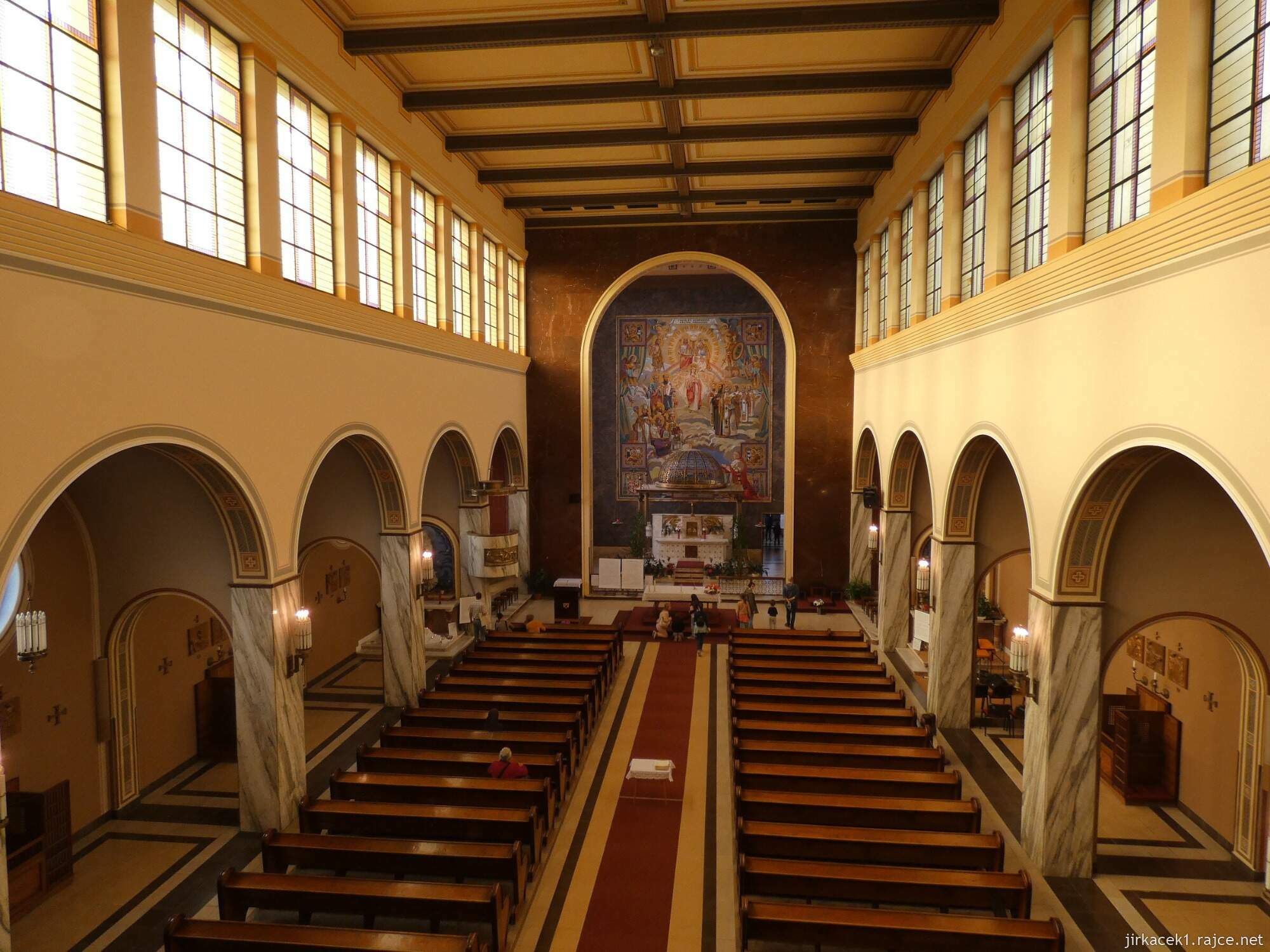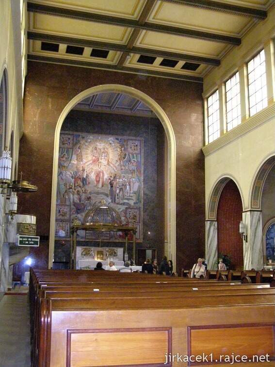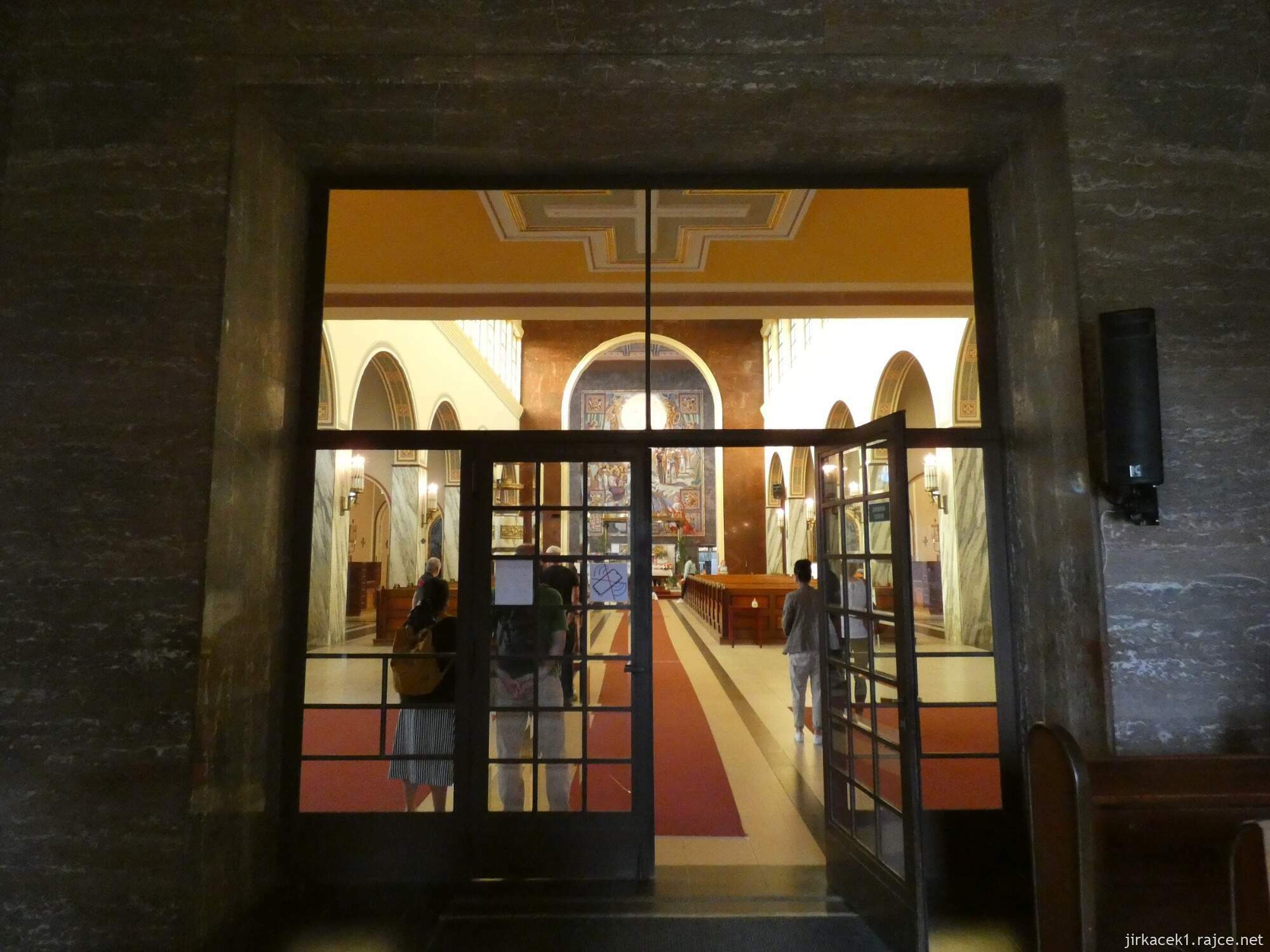 Monumentální římskokatolický chrám o délce 72 metrů, šířce 20 metrů jsme také často míjeli při našich procházkách nebo když jsme šli pěšky na menší nákupy do některého z přilehlých obchodů. Jelikož se tak dělo v různých ročních obdobích a občas jsme si sebou vzali fotoaparát, svatostánek jsme si vyfotili zalitý letním sluncem, pocukrovaný sněhem nebo pod jarní modrou oblohou. Vzhledem k tomu, že se chrám po své výstavbě v letech 1929 – 1932 stal dominantou širokého okolí, byl cílem objektivu našeho fotoaparátu nejen když jsme se ocitli v jeho bezprostřední blízkosti, ale zvěčnili jsme si jej také při pohledech z dálky. Když jsme se však chtěli podívat do jeho útrob, jako ateisté jsme k tomu nevyužili pravidelné bohoslužby, ale Dny evropského dědictví nebo Noc kostelů.