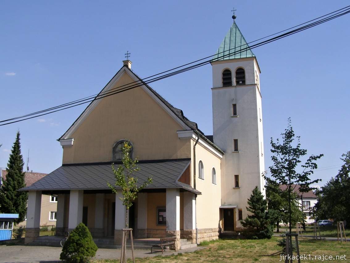 Na závěr jsme shlédli obrazy křížové cesty po obou stranách dřevěných lavic a poté jsme se vydali na obhlídku zbývajících exteriérů svatostánku. Nejprve jsme spatřili dvě okna s půlkruhovým záklenkem, prosvětlující loď kostela a vzápětí jsme narazili na mohutnou hranolovou věž, vestavěnou netradičně do boční strany stavby. Na třech stranách jsme napočítali tři okna pod sebou a další jsme uviděli ve zvonicovém patře. Věž byla zakončena jehlancovou střechou a křížem, tentokrát klasickým jednoramenným. Prošli jsme kolem vchodu do věže a poté jsme stanuli u přípravny kněžích, tedy sakristie. Za rohem nás pak čekal plochý presbytář bez oken, jehož jedinou výzdobu tvořil bílý kříž nakreslený na žluté fasádě. Pokračovali jsme dál a na druhé straně kněžiště jsme přece jen uviděli jedno okénko. Další tři identická okna pak byla na lodi, kolem níž jsme přišli opět před kostel. Zakončili jsme tak obhlídku rozvadovické církevní stavby, takže jsme se mohli vydat k našemu vozu. Když jsme k francouzskému stříbrnému pokladu dorazili, odjeli jsme přes Litovel do sousední Červenky, kde jsme shlédli další kostel, zámek a kapličku. To je však už jiný příběh. Chcete-li vědět, jak náš výlet pokračoval, vyhledejte si v sekci Velké povídání o výletech článek Jak jsme mezi Olomoucí a Litovlí poznávali jednu památku za druhou, který vám prozradí další podrobnosti.