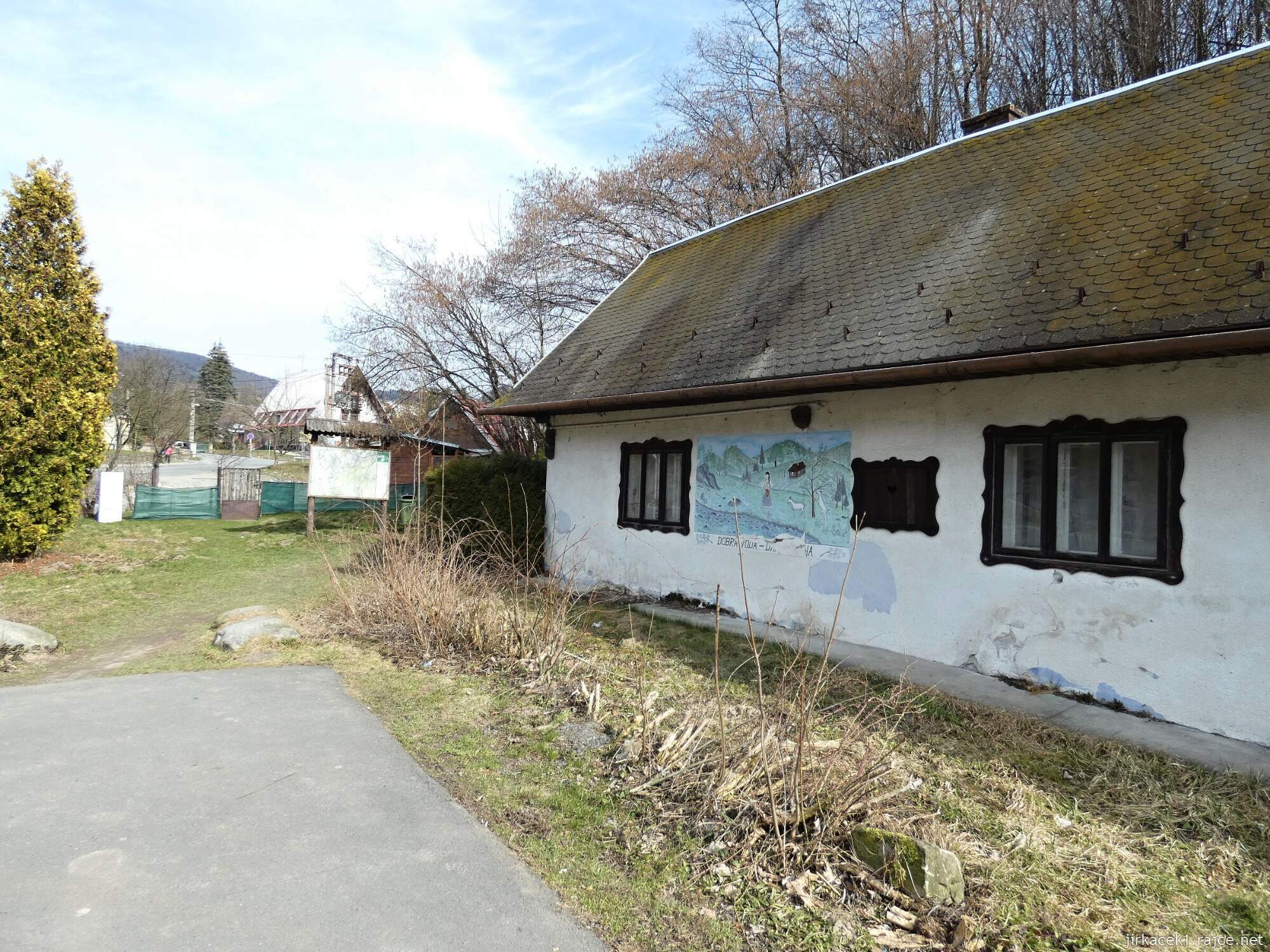 O 11 let později jsme do Rusavy přijeli podruhé a i tentokrát jsme se zastavili u Hurbanovy studánky, neboť jsme byli zvědavi, jestli se na zdroji životodárné tekutiny něco nezměnilo. Každopádně jsme sem přijeli jiným autem, jímž bylo černé SUV korejské výroby, které jsme zaparkovali na stejném místě jako poprvé a přes most vyrazili ke studánce. Ještě než jsme k ní došli, všimli jsme si na přilehlém stavení velmi hezkého obrázku, namalovaném na bílé fasádě, který znázorňoval mladou dívku se džbánem v ruce. Patrně se chystala do nádoby nabrat vodu a to za účasti kozí rodinky, ale to jsme se jen domnívali. Fantazii jsme museli zapojit i při odhalení textu pod obrázkem, jenž zčásti chyběl, jelikož se z domu odloupla omítka, která sebou odnesla i pár písmen, nicméně zde bývalo patrně napsáno Dobrá voda – dar od Boha.