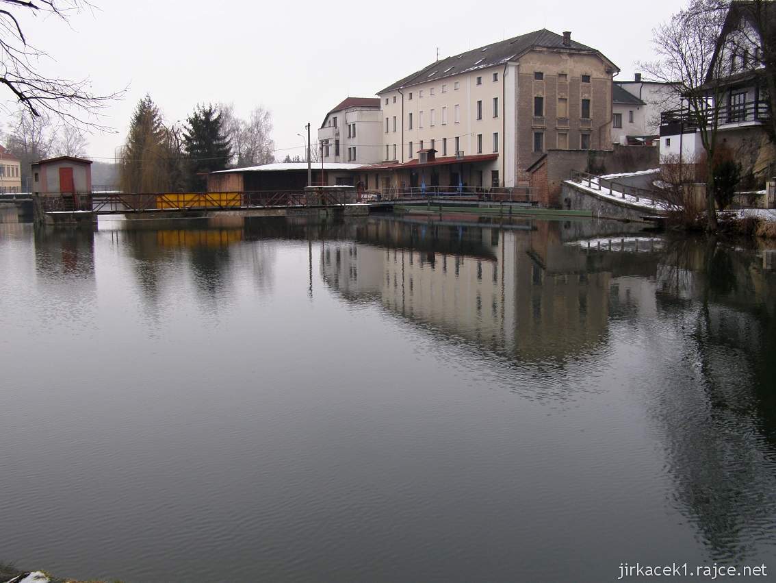 Následně jsme sestoupili na nábřeží, kde jsme shlédli zadní části mlýnských budov a elektrárny. Dlouho jsme se zde však nezdrželi, vrátili jsme se na most přes Tichou Orlici a zamířili k bývalému knížecímu pivovaru. Když jsme za mostem odbočili doleva, nezapomněli jsme se podívat na mlýn z druhé strany řeky. Právě odtud se nám zdál pohled na mlýn nejkrásnější, když celou kompozici vhodně doplňovala tiše plynoucí řeka s jezem.