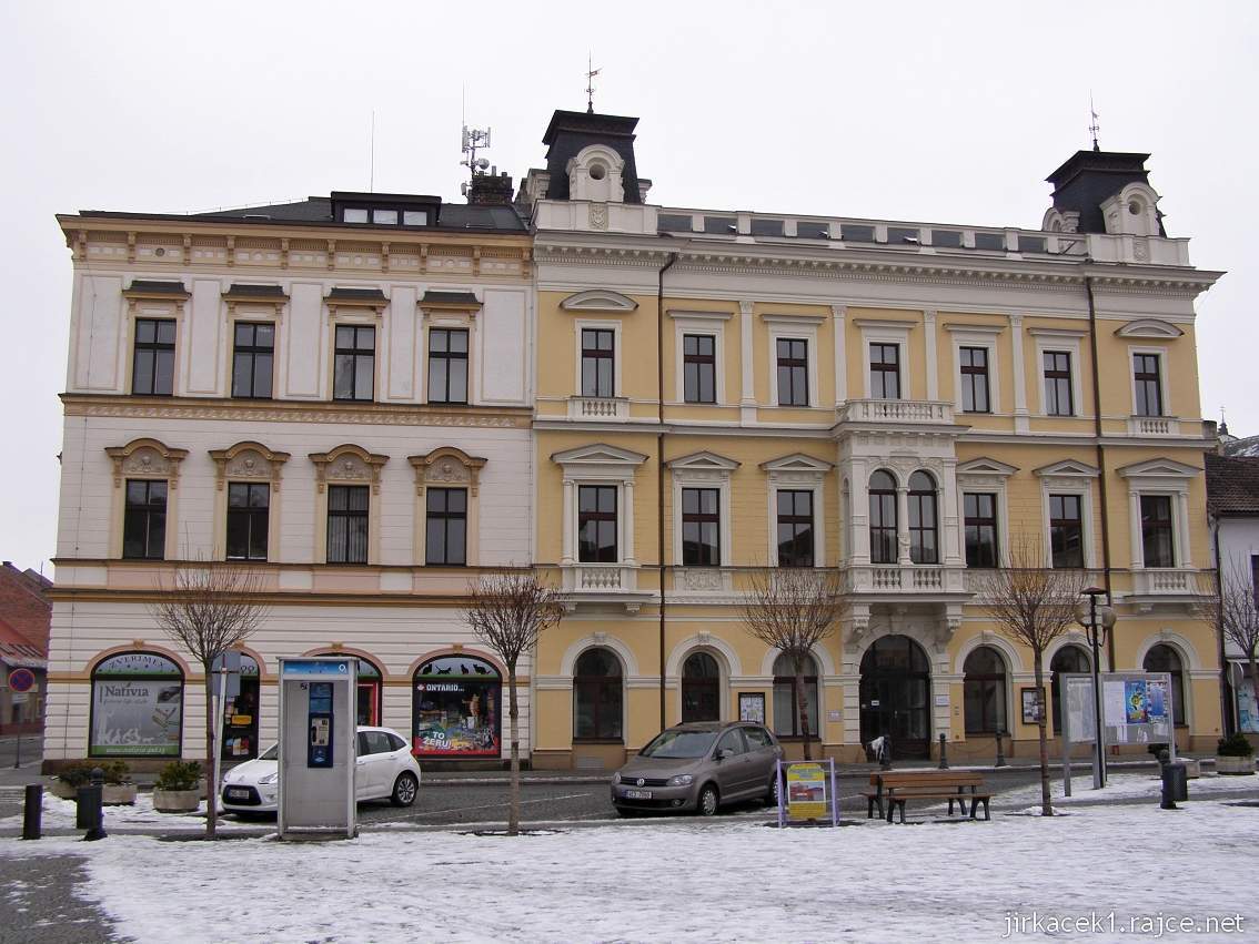 Na první pohled však nevynikaly žádnou historickou hodnotou a bylo vidět, že byly přestavovány nebo nově vybudovány, neboť většinu zničily četné požáry města. Bylo nám jasné, že první domky na náměstí bývaly dřevěné se starodávným podloubím a teprve později byly stavěny jako kamenné s průčelím, které se však nedochovaly. Zaujala nás budova obchodní akademie či bývalý Panský dům, později přestavěný na sokolovnu.