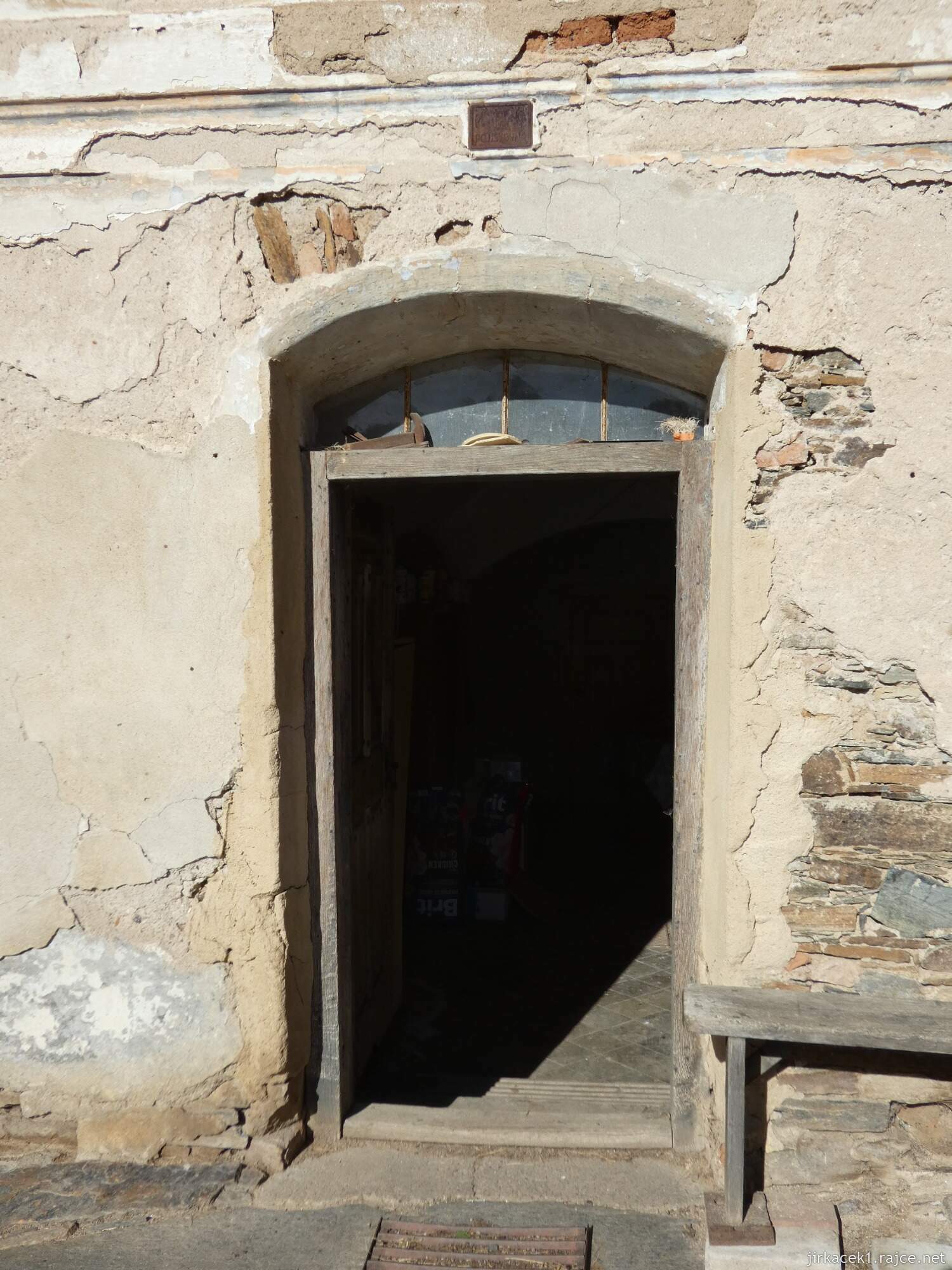 Jednalo se o další sýpku, pocházející tentokrát z roku 1774, která stávala v Kornaticích. Před námi stál jednokomorový špýchar s dřevěnou částí nad polozahloubeným sklepem s valenou klenbou. Ke zmíněné komoře jsme mohli přistoupit po krátké pavláčce, ale interiér sýpky byl uzavřen. Zaujala nás informace, že hlavní konstrukční zajímavostí bylo užití starobylého typu roubené klenby, opatřené hliněným výmazem, na jejímž rubu pak byla položena lehká konstrukce krovu, kterou bylo možné v případě požáru snadno odstranit, a zabránit tak výraznějšímu poškození stavby. Z protipožárních důvodů byly hliněným pomazáním opatřeny také všechny stěny srubu, který sem byl přenesen již v roce 1977, poté co bylo tehdejší majitelkou usedlosti docíleno jeho zbytečného zboření.