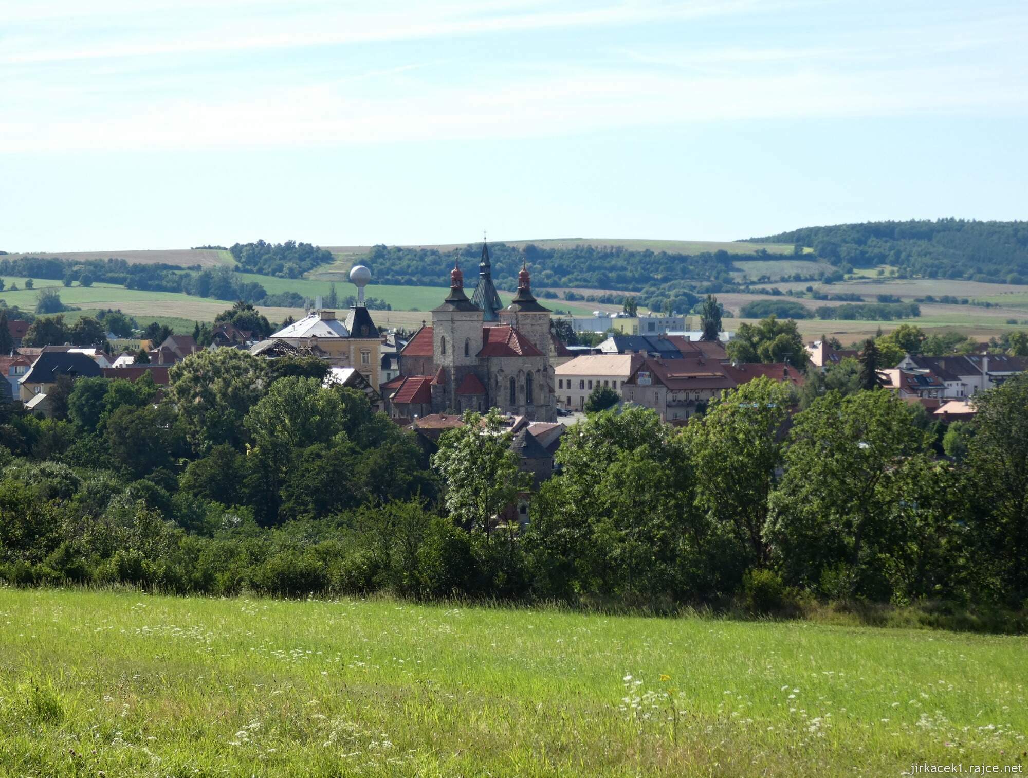 Výzkum vedl archeolog Miloš Šolle, o němž jsme si přečetli několik věcí dole na tabuli, ale nás spíše zaujalo, že tento člověk nechal obnovit hliněnou část brány a to za použití původních technologií. Cílem tohoto experimentu bylo zjištění, že pokud se nepoužije výdřeva, nevydrží vstupní otvor ani 20 let. A to byl důvod, proč jsme bránu dole pod námi marně hledali a velice nás to mrzelo. Pokud by tu stála, jistě by dokázala přilákat ještě více návštěvníků do Staré Kouřimi, kteří se zatím museli spojit pouze s menším modelem brány nedaleko vodního mlýna Bukačov. S povzdechem jsme šli pomalu dál loukou a zároveň jsme se kochali výhledem na Kouřim s dominantním kostelem sv. Štěpána, jehož věže trčely k nebi jako anténky.