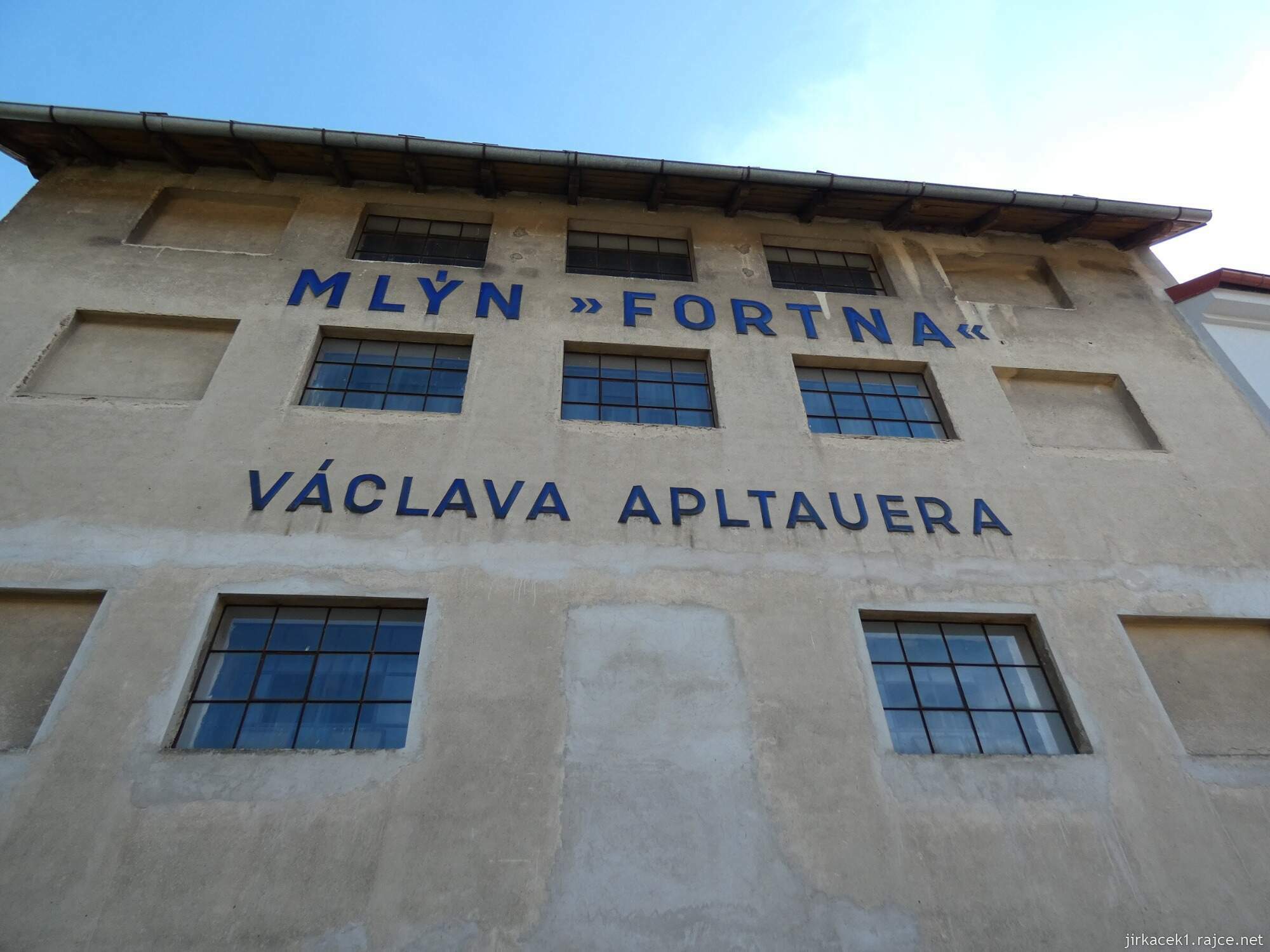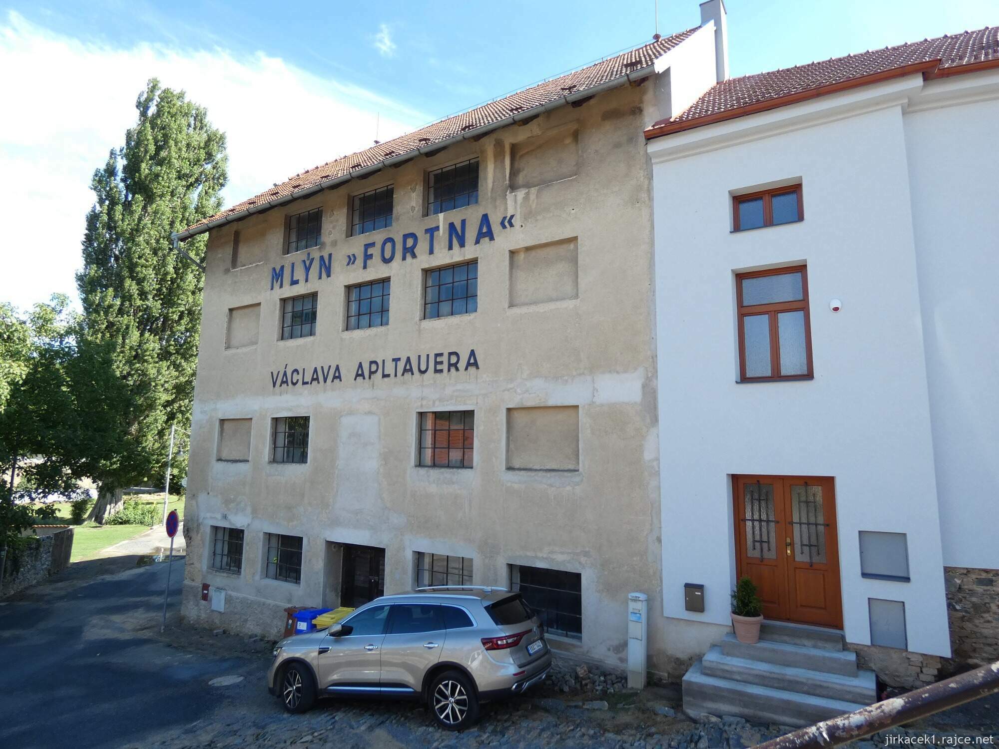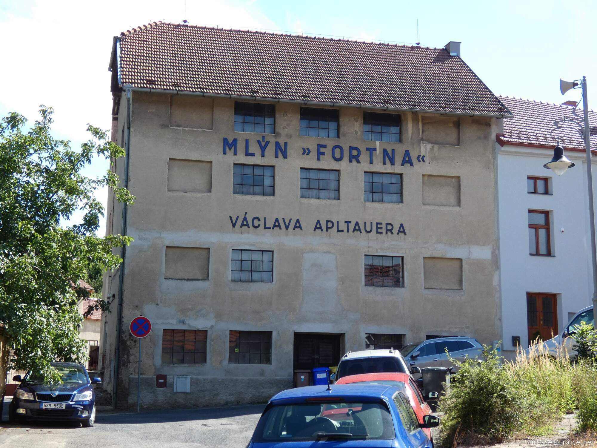 V prvním patře se nacházela loupačka, mlecí stolice, váha a pytlování. Ve druhém patře byla sila a někdy aspirační jednotka. Ve třetím patře stála čistička, vysévače, reforma a prachové filtry, nad ní podstřešní transmisní pohon a hnací zařízení zrnových výtahů. V roce 1930 byl majitelem mlýna Václav Apltauer, který se svými pomocníky obsluhoval vyjmenovanou technologii Fortenského mlýna, ale ani to nestačilo k tomu, aby fungoval až do 21. století. Mletí bylo ukončeno a tím skončila několikasetletá historie bývalého klášterního mlýna, což nás pochopitelně mrzelo, ale nedalo se nic dělat. Staré časy nám tak připomínal pouze nápis na budově, který zněl : Mlýn Fortna Václava Apltauera. Když jsme si vysokou mlýnskou budovu prohlédli ze všech možných stran, zamířili jsme k malému domečku v ulici Na schodech, která kopírovala Růžovou kolegyni.