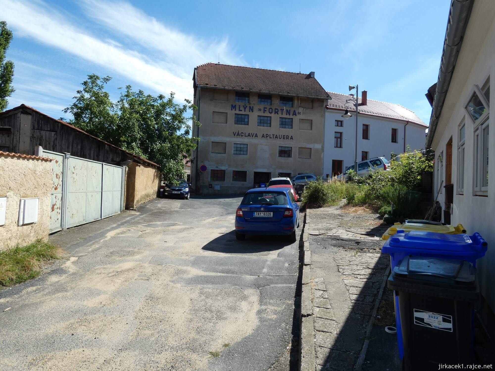 Na rozdíl od ní však dostála svému názvu, neboť se skládala v podstatě ze samých schodů. Nemuseli jsme jich zdolávat příliš mnoho, neboť zmíněný domek stál v prostřední části ulice. Domeček s číslem 239 nás zaujal kvůli tomu, že v něm bydlel kat, a to až do svého propuštění z městských služeb roku 1783. Nad katovnou dříve stávala věž, v níž býval vchod do města, jemuž se říkalo Katova fortna. Popravčí, jakožto osoba opovrženíhodná, totiž mohl do města vstoupit pouze bránou, jemu a osobám nečistým určenou. U domku jsme se dlouho nezdrželi, ale byli jsme rádi, že jsme jej viděli, neboť s Fortenským mlýnem, alespoň podle názvu, trochu souvisel. Vzápětí jsme se přesunuli k Panskému mlýnu, k němuž jsme po pouhých 100 metrech brzy dorazili.
