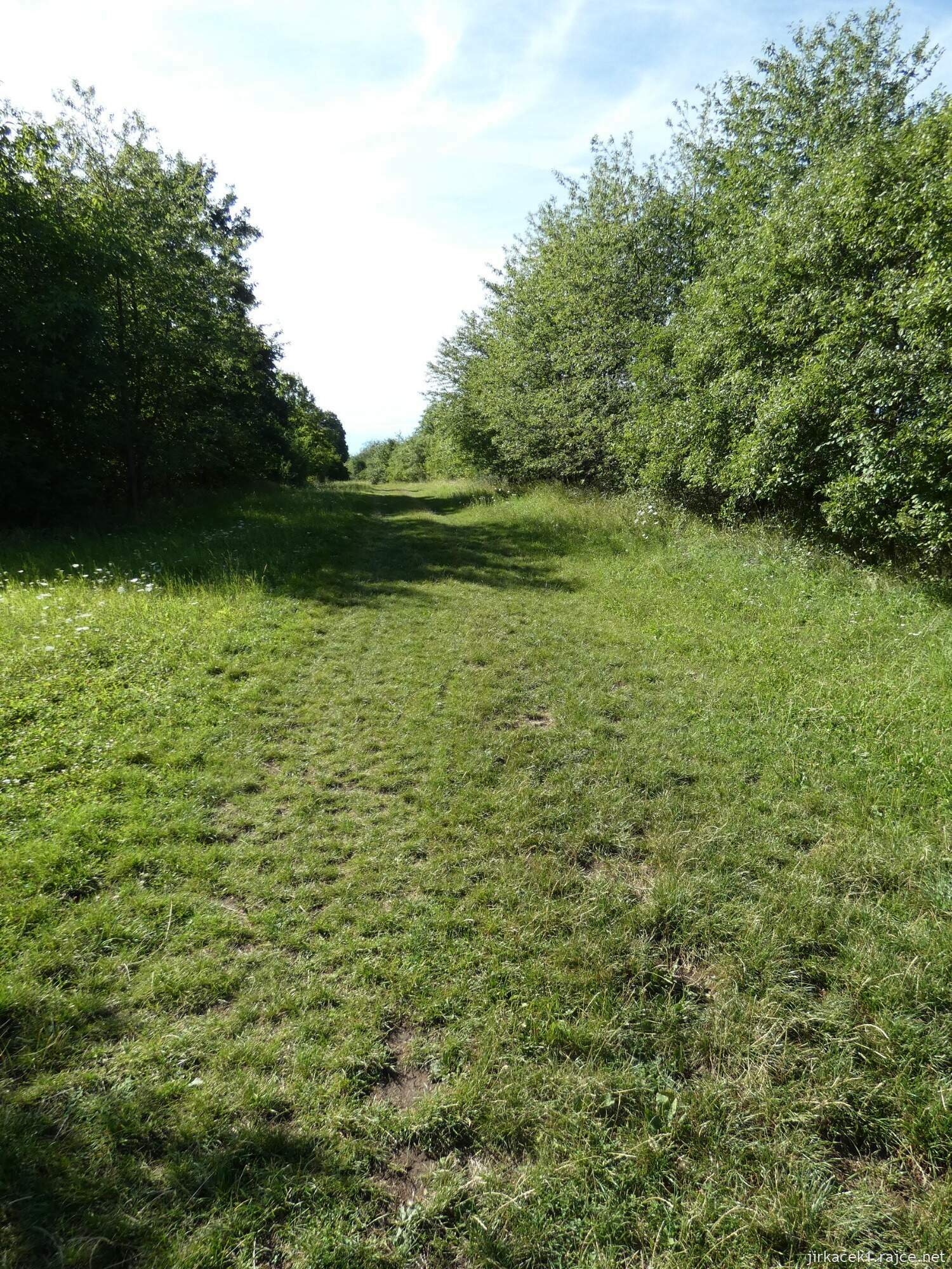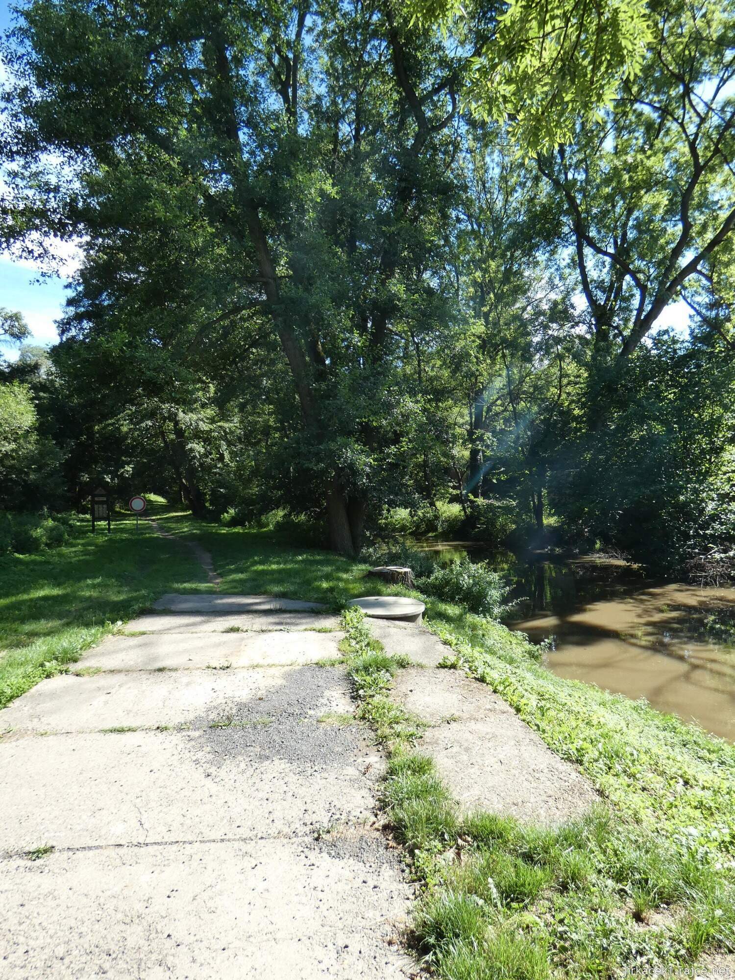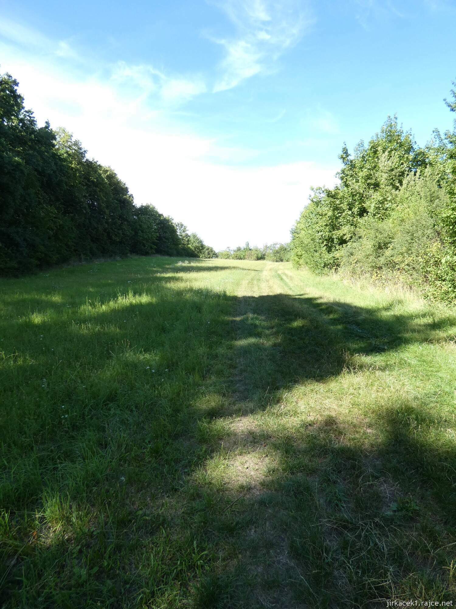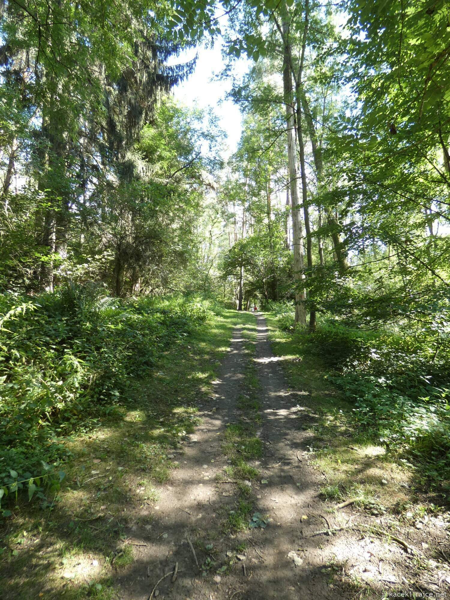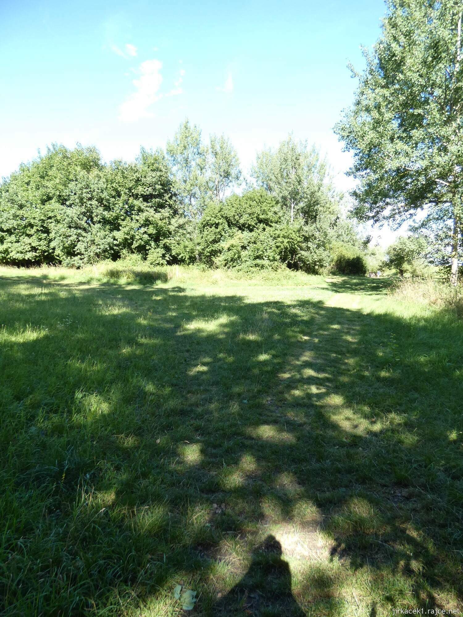 K našemu překvapení však za ně nedostávali peníze, které v éře před nástupem Přemyslovců k moci neznali, nýbrž si věci vyměňovali mezi sebou. Docela nás dostal fakt, že Slované rovněž obchodovali s otroky a rádi nakupovali exotické ovoce, víno koření a drahé látky, které samozřejmě byly určeny pro potřeby knížecího paláce. Když jsme dočetli zajímavé informace, rozhlédli jsme se po široké louce, táhnoucí se směrem doleva k nejvyššímu bodu Staré Kouřimi, kam se zrovna vydala dvě ženy se psem. My jsme si to však namířili rovně napříč loukou k lesíku na druhé straně, za nímž se nacházelo Libušino jezírko. Cestou jsme minuli dvojici manželů středního věku, kteří šli opačným směrem a když jsme prošli akátovým lesíkem, objevila se před námi úzká mýtina a za ní se rozkládalo Libušino jezírko.