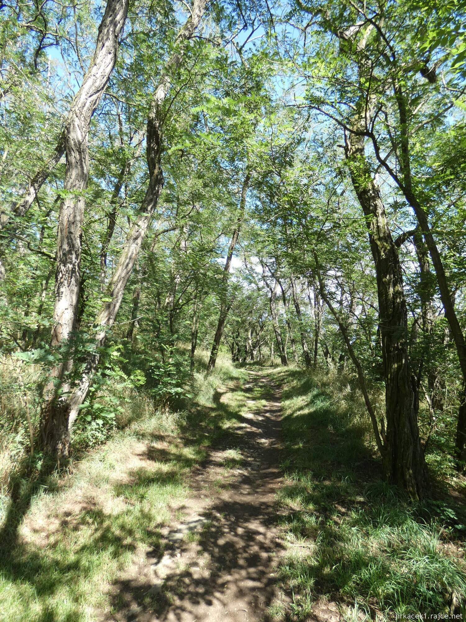 Musela to být při slunovratech a jiných svátcích úžasná atmosféra, trochu děsivá, leč vzbuzující naši zvědavost a chuť vše prožít na vlastní kůži. Když jsme se vrátili do reality, prohlédli jsme si vyschlé dno jezírka s kusy dřeva, obešli jej kolem dokola a rozhlédli se po okolí prohlubně, obklopené několika starými stromy. Pak jsme odmítli nabídku dřevěného altánu k odpočinku a vydali se na další cestu. Kráčeli jsme podlouhlou mýtinou, která mírně stoupala vzhůru a v zatáčce se nám naskytl hezký pohled do krajiny. O chvíli později jsme si užívali dalších výhledů, neboť jsme dorazili na nejvyšší bod hradiště Stará Kouřim, které dole pod námi ohraničovala silnice do chatové osady Strašík. Dále zde stála barokní kaplička, ale než jsme k došli, tak jsme si nejprve prostudovali panel s informacemi o životě na hradišti.