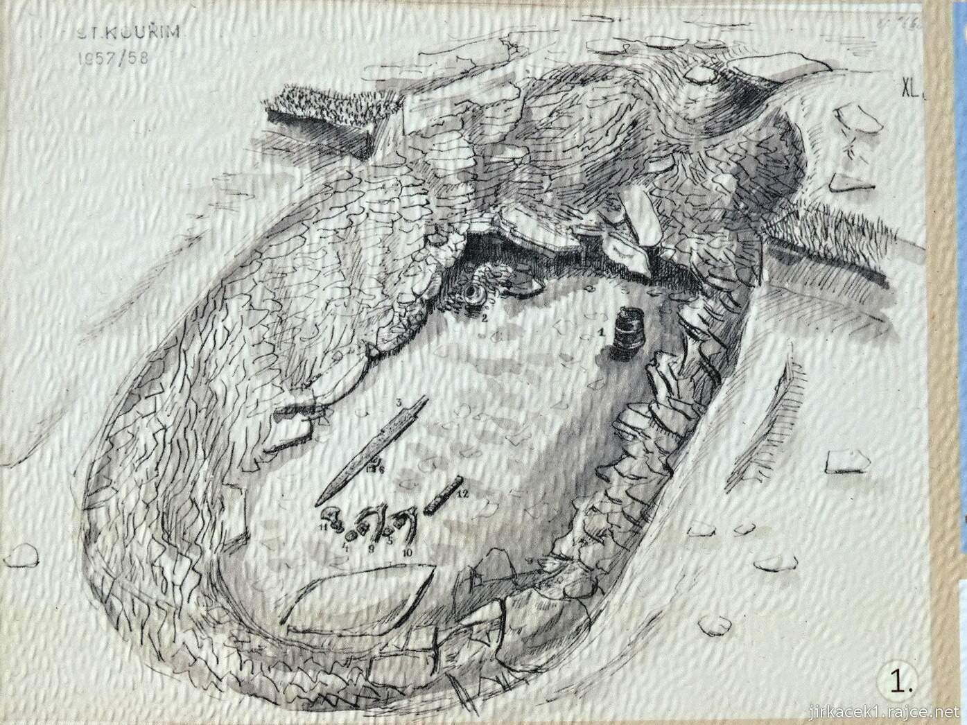 Dále jsme se dozvěděli, že od 8. století začali stavět mohyly, do nichž ukládali zmíněného popelnice a teprve později do vkládali celé kostry. Připadlo nám logické, že když ženy na svou poslední cestu dostaly šperky, muži byli pohřbeni se svými zbraněmi, štítem a ostruhami. Všichni pak spravedlivě získali ještě potravinové milodary, což bylo s příchodem křesťanství zrušeno. Když jsme dočetli poslední řádky, šli jsme se podívat na samotné jezírko. Bohužel bylo tento rok sucho a tak jsme marně hledali hladinu jezírka, které kdysi bylo napájeno vodou z puklinového pramene či dešti a kromě své funkce přirozeného vodního rezervoáru mělo i mimořádný kultovní význam. Jezírko pro tyto účely mělo zpevněné břehy, stály zde dřevěné idoly bohů a kolem hořely ohně.