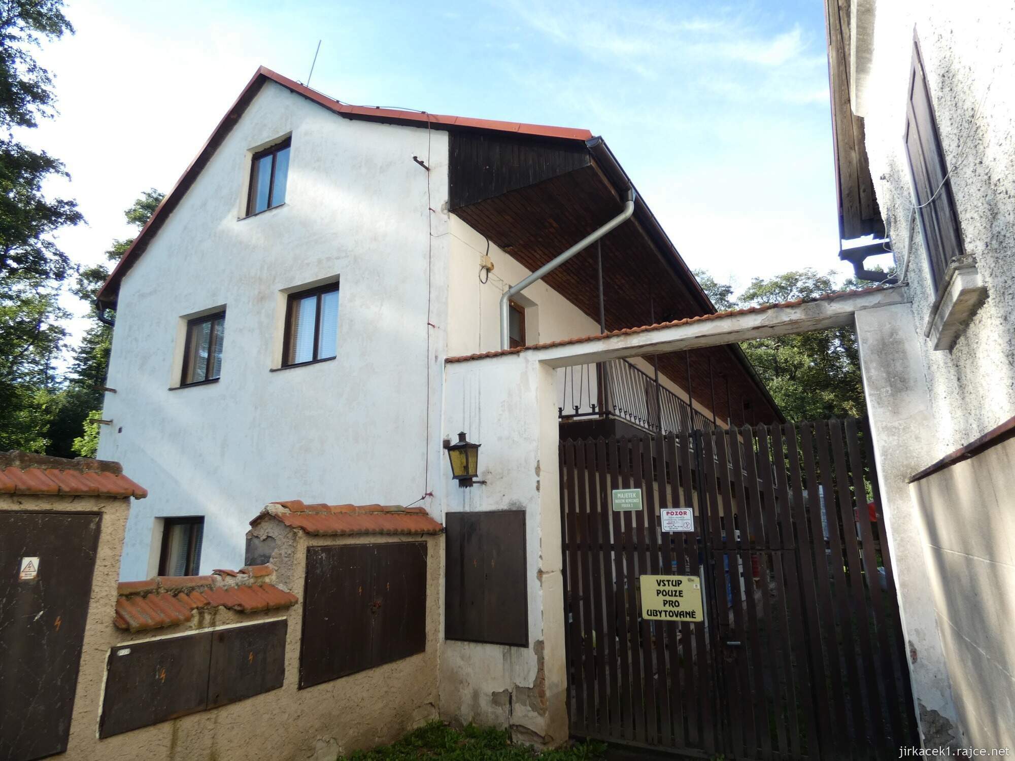 Nicméně i tak jsme museli zapojit hodně fantazie, abychom si dokázali představit, že sem v minulosti jezdily povozy pro pomletou mouku a další mlynářské produkty. Slavné časy tohoto mlýna však již patřily historii a mouka se v domě objevovala pouze v nákupních taškách jeho majitelů. A jelikož nás obyvatelé bývalého klapáče dovnitř nepozvali a my jsme nechtěli zlovolně vniknout na jejich soukromý pozemek, více jsme toho zde už vidět nemohli. Mlýn Hrázka jsme tedy opustili a vrátili se k autu na parkovišti, jímž jsme vzápětí Ruskou ulicí popojeli asi 200 metrů k dalšímu klapáči s názvem Hřebíčkov. Zatímco u prvně jmenovaného mlýna jsme viděli alespoň některé části domu, z Hřebíčkova jsme spatřili pouze střechu, vstupní bránu a přilehlý rybník u potoka Střebovka.