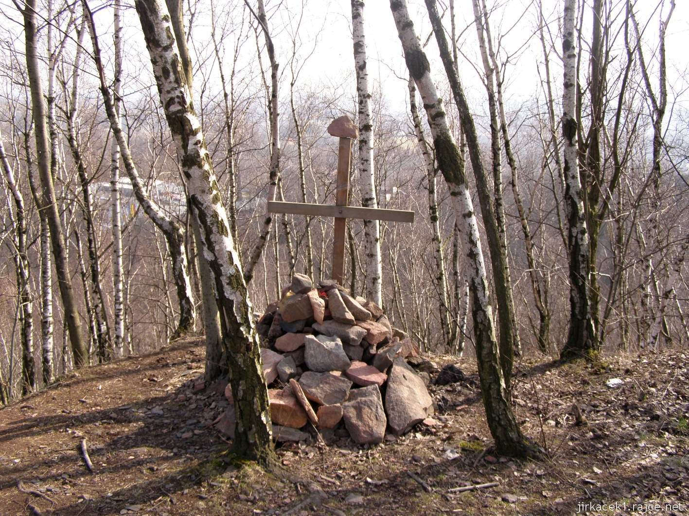 Mezi bílými stromy jsme našli pyramidovou stříšku ze čtyř trámů, symbolizující vrchol Emy. Hned vedle jsme spatřili dřevěný kříž, umístěný do navršené hromádky kamení, jenž snad měl upomínat na oběti z řad horníků. Na jedné bří jsme uviděli turistickou tabulku, ze které jsme se dozvěděli, že se právě nacházíme ve výšce 324 metrů nad mořem. Kdybychom sem přišli za pár let, možná by zde visel jiný údaj, neboť vlivem přirozeného propadu hlušiny Ema od roku 1960 poklesla asi o osm metrů.