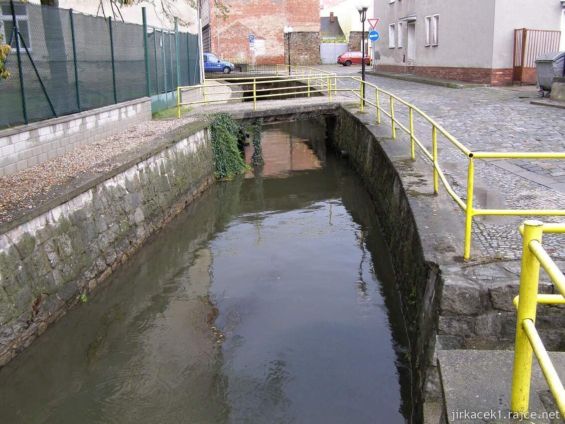 Pak jsme se věnovali mlýnskému náhonu Nečíz, jehož vody do roku 1922 poháněly mlýnské kolo o průměru 3,7 metru a který i v době naší návštěvy dotvářel romantickou atmosféru uliček za radnicí. Samotný náhon nedaleko odtud začínal již od středověku svou pouť městem a nás vždy fascinovalo, že se během své krátké cesty několikrát vynořil, opět ukryl pod zem či městské stavby a pak se zase objevil. Zcela unikátní urbanistický projekt si po zásluze získal naši pozornost a tak jsme se rádi prošli směrem k radnici, pod níž také protékal a zase zpátky ke mlýnu. Chvíli jsme také pozorovali tekoucí vodu, která po dešti trochu nabrala na síle, jak vytéká zpod mlýna a valí se k náměstí, a pak jsme se seznámili s historií mlýna.